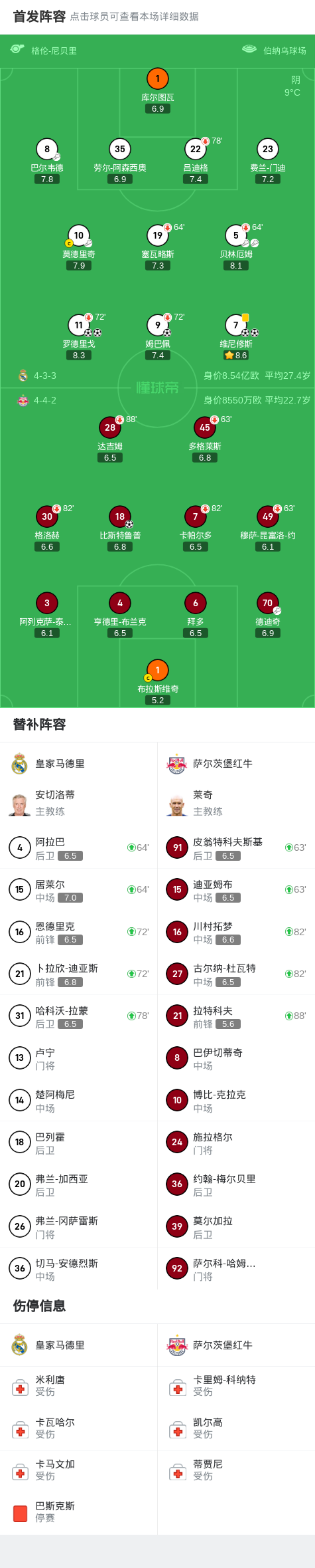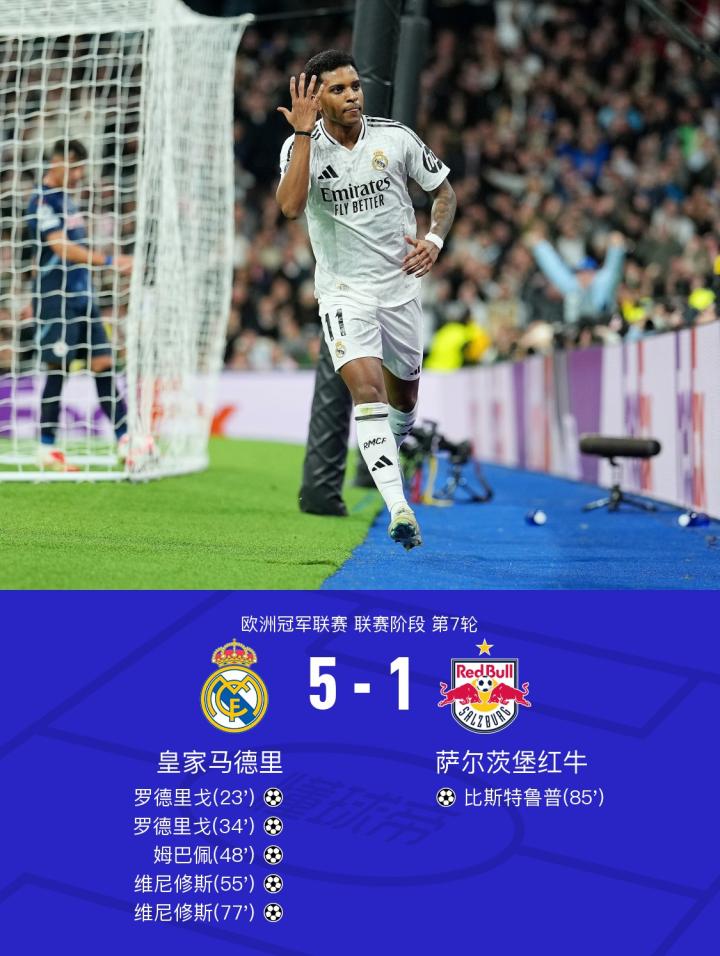 皇马5-1萨尔茨堡 罗德里戈维尼修斯发威